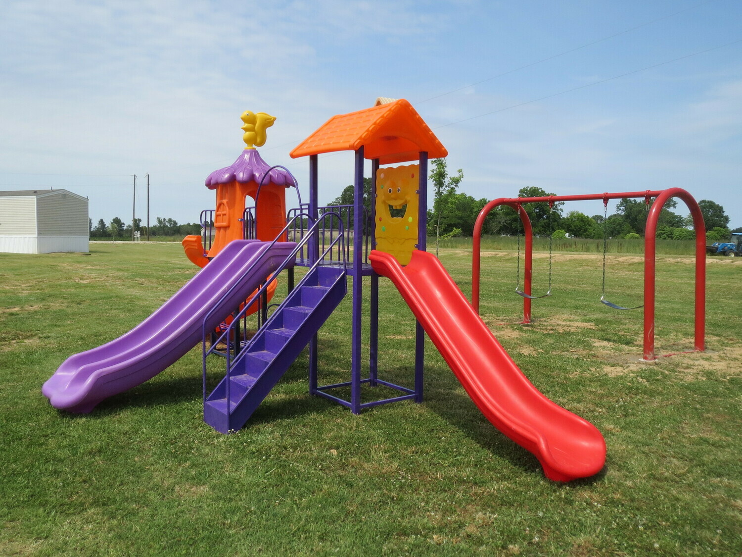We do offer a bath house and laundry facility for your convenience. There is also a playground for the children.